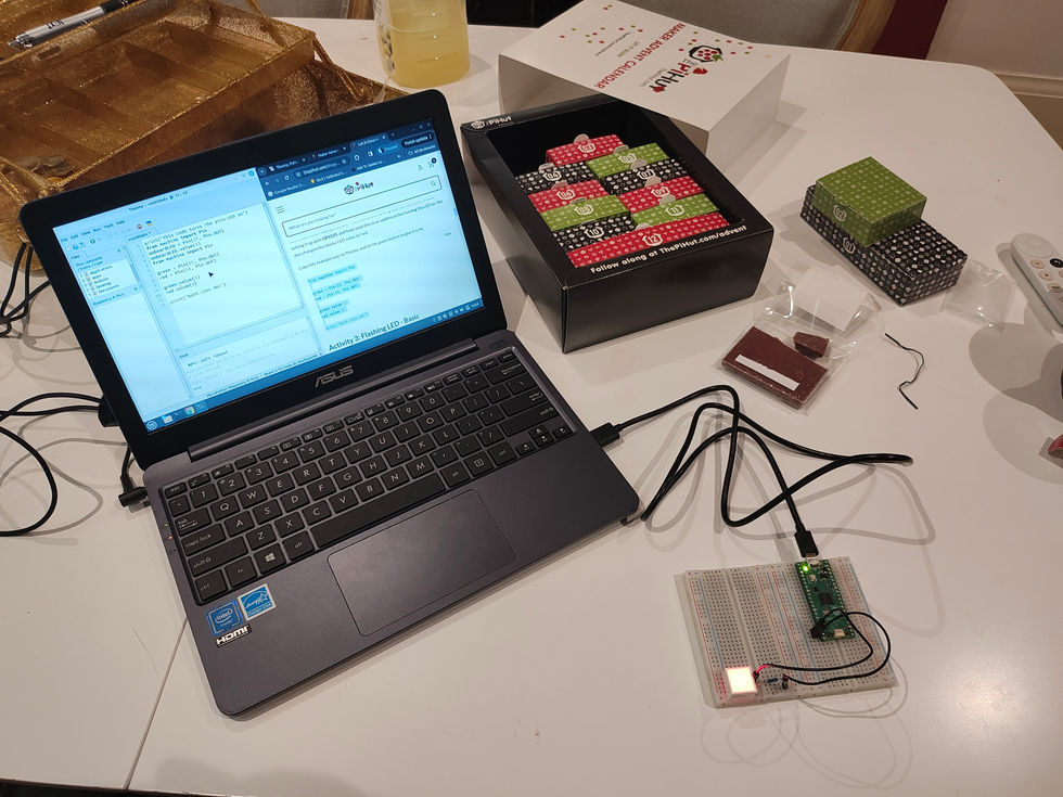 The PiHut Maker Advent Calendar: Make It Glow is a 12-day kit that introduces using the Raspberry Pi Pico H. Each day is a slightly different project that builds on the previous, creatnig LED-based circuits and interactive systems with jumper wires and breadboards.